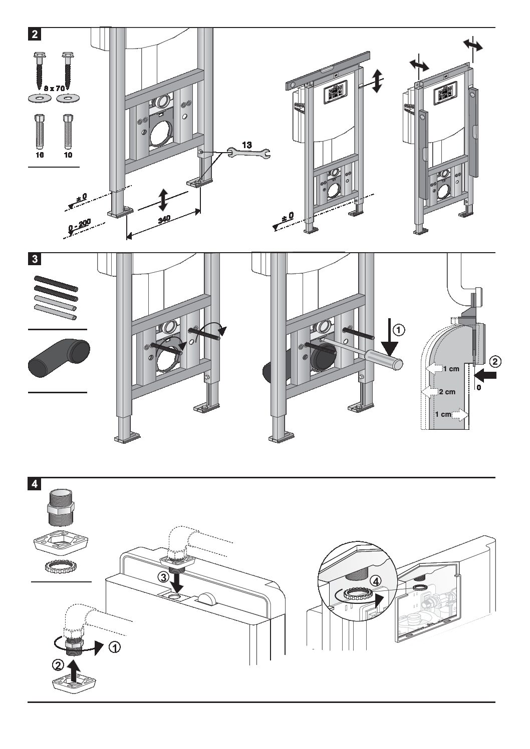- pritrditev WC školjke 60 mm višje od standardnih elementov,